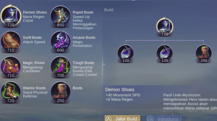 Item pertama yang disarankan oleh Mobile Legends untuk menggunakan Vexana ialah Demon Shoes.