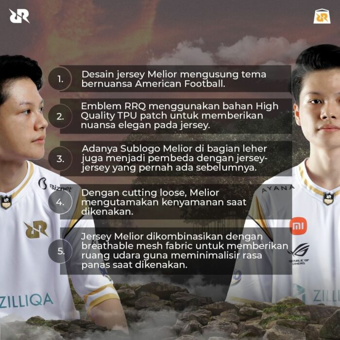 Menariknya, ternyata Jersey Melior yang akan dikenakan oleh seluruh divisi Team RRQ tersebut ternyata terinspirasi dari jersey American Football.