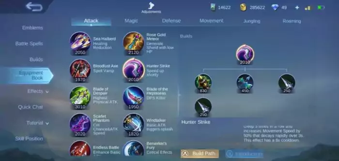 Pertama ada item Hunter Strike dimana item ini punya tambahan movement speed yang tinggi hingga 50% ketika memberikan damage kepada lawan.