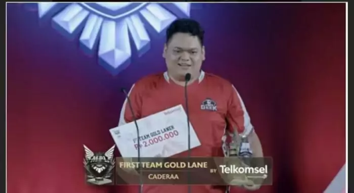 First Team Winner | Caderaa (Goldlaner/Geek Fam) Kairi (Jungler/ONIC Esports) SANZ (Midlaner/ONIC Esports) Butsss (EXP Laner/ONIC Esports) Kiboy (Roamer/ONIC Esports) |