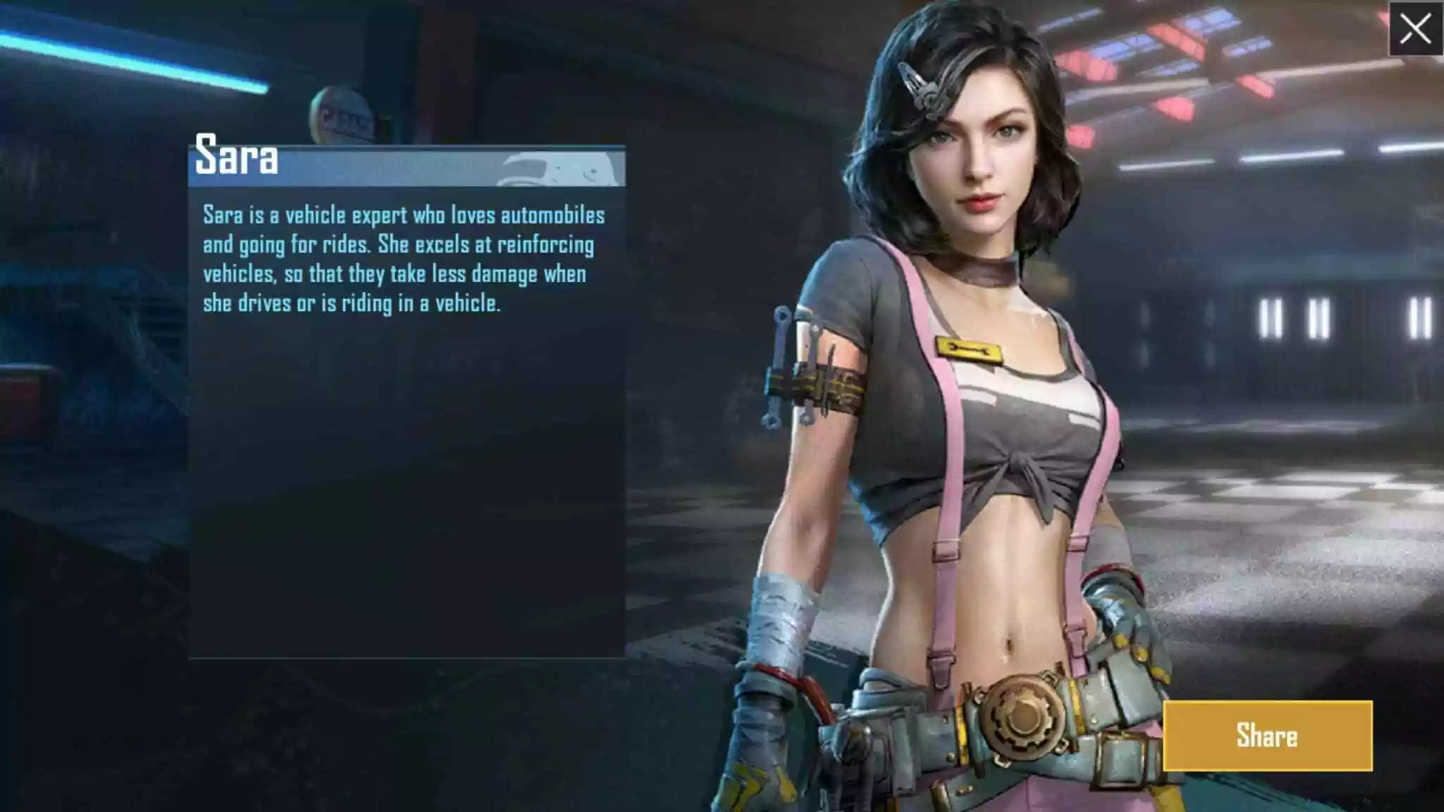 Sara adalah wanita dalam PUBG Mobile yang mempunyai kemampuan bersama kendaraan.