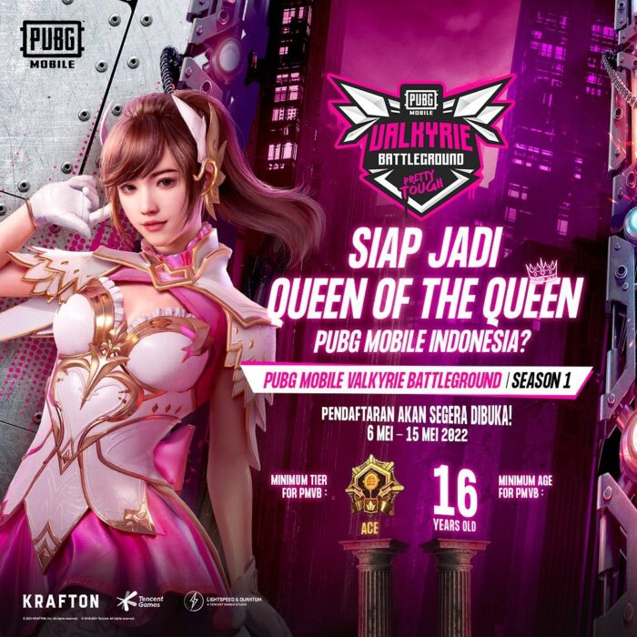 Setelah sukses dengan PMPL Ladies selama 2 musim, PUBG MOBILE kembali menggelar turnamen khusus perempuan, kali ini dengan mengusung nama baru yaitu PUBG MOBILE Valkyrie Battleground (PMVB) Season 1. Menawarkan total hadiah ratusan juta rupiah, turnamen ini terbuka untuk umum dan bisa diikuti oleh seluruh Ladies di Indonesia.