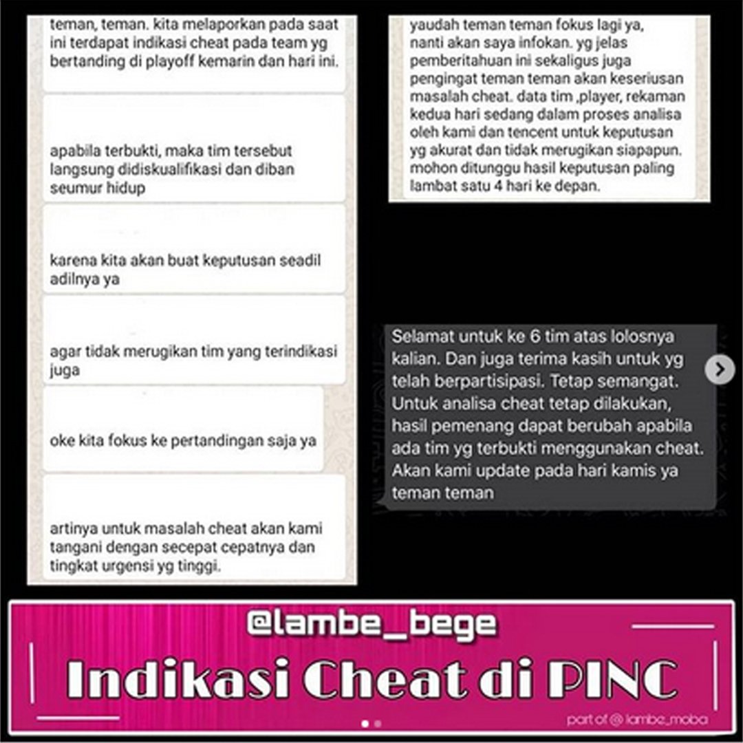 Mengenai hal tersebut resiko terbesar mempertandingkan tim amatir dalam turnamen bergengsi PUBG Mobile bisa saja terdapat pemain curang atau pemain yang menggunakan cheat. Hal tersebut benar saja terjadi, seperti yang dikabarkan oleh salah satu akun komunitas PUBG Mobile di Indonesia yaitu Lambe Bege.