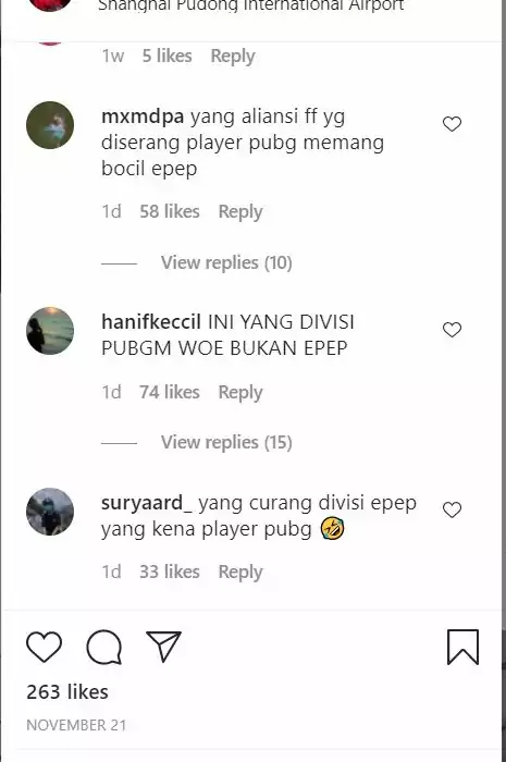 Akun Instagram player PUBG Mobile dari tim King of Gamers ini, tiba-tiba dipenuhi oleh komentar orang Indonesia yang diyakini merupakan fans Free Fire.