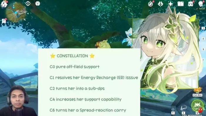 Menarinya pada C2 Kusanali berubah role menjadi Sub DPS, artinya damagenya cukup besar untuk memberikan damage saat off-field. Nampaknya pada C2 damage dari Burst ataupun Skill meningkat sehingga bisa menjadikan Kusanali menjadi Sub DPS.